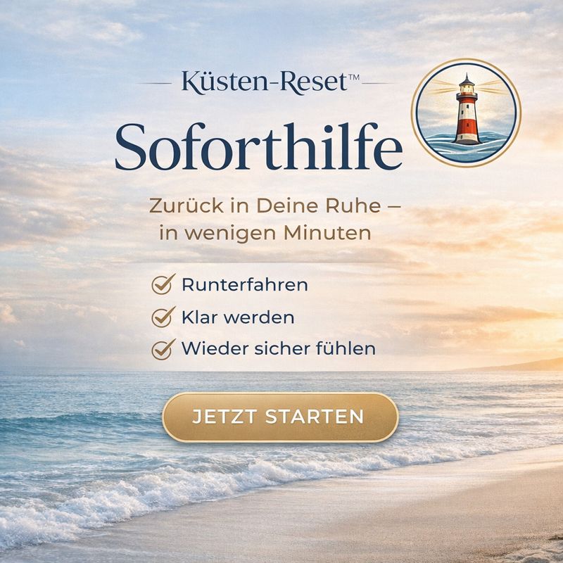 Küsten-Reset™ Soforthilfe ist Dein schneller Weg zurück in Ruhe, Klarheit und Sicherheit – in wenigen Minuten.